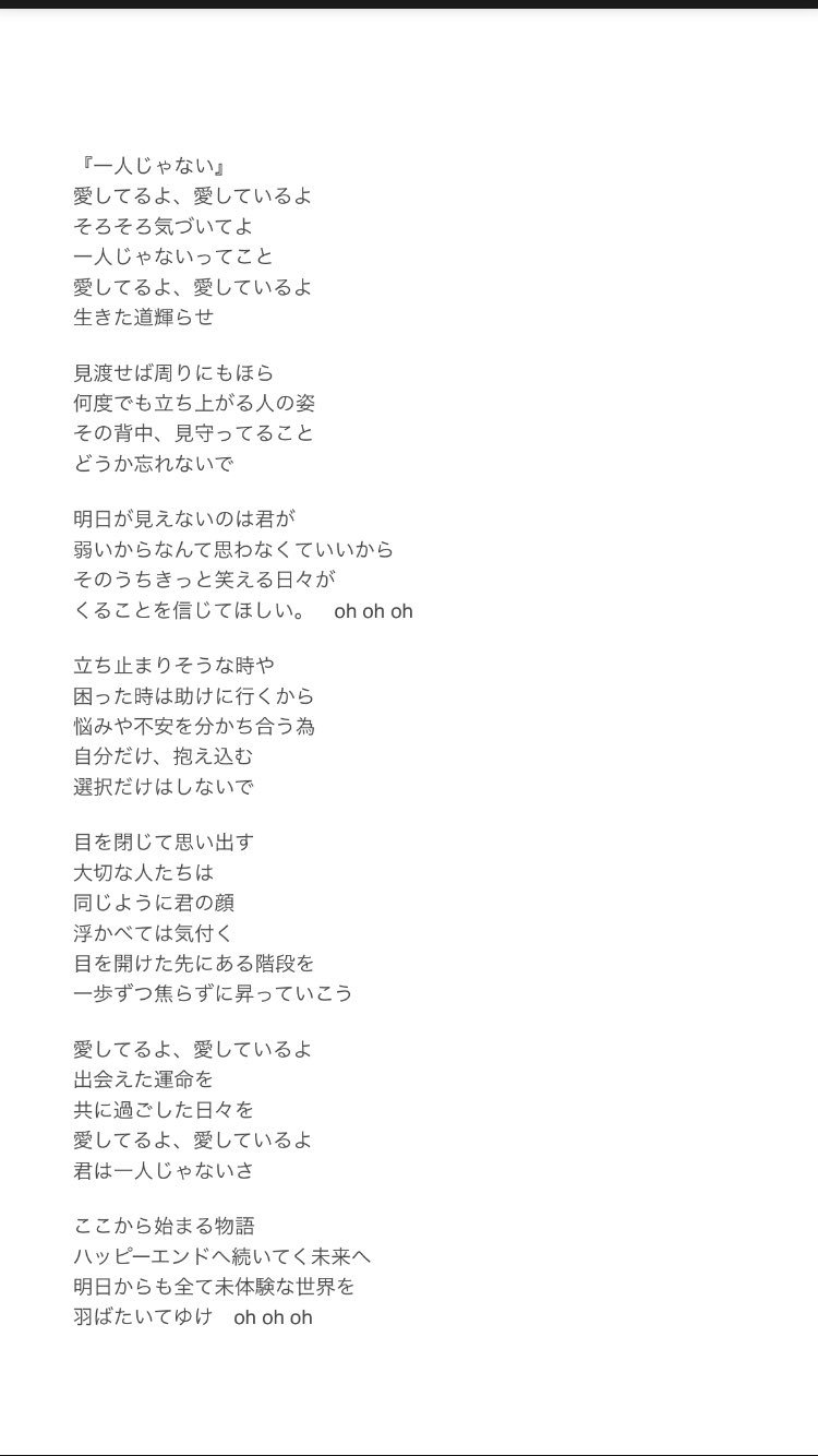ট ইট র Happy3days 新曲 一人じゃない の歌詞を 知りたいとお問い合わせ頂きましたので公開させて頂きます 是非覚えて一緒に歌ってください よろしくお願い致します