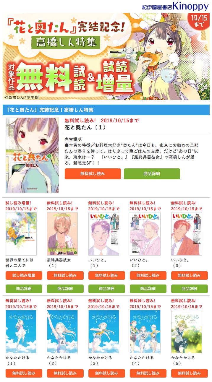 高橋しん しんプレ On Twitter 花と奥たん 完結記念でむちゃくちゃ太っ腹の試し読みキャンペーン中です いいひと 最終兵器彼女 外伝集 世界の果てには君と二人で かなたかける そして 花と奥たん 週末のお供に お友達へのおすすめに