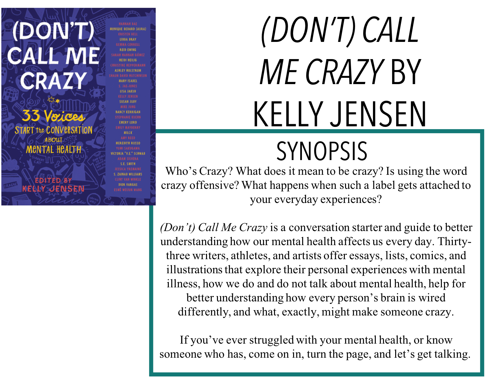 Review Don T Call Me Crazy 33 Voices Start The Conversation About Mental Health Edited By Kelly Jensen The Novel Hermit