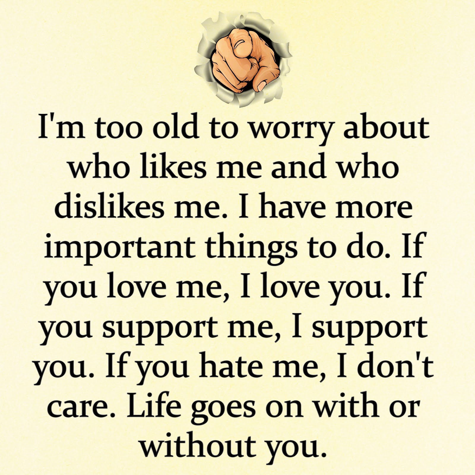 Quotesforunet I M Too Old To Worry About Who Likes Me And Who Dislikes Me I Have More Important Things To Do If You Love Me I Love You If You Support Me