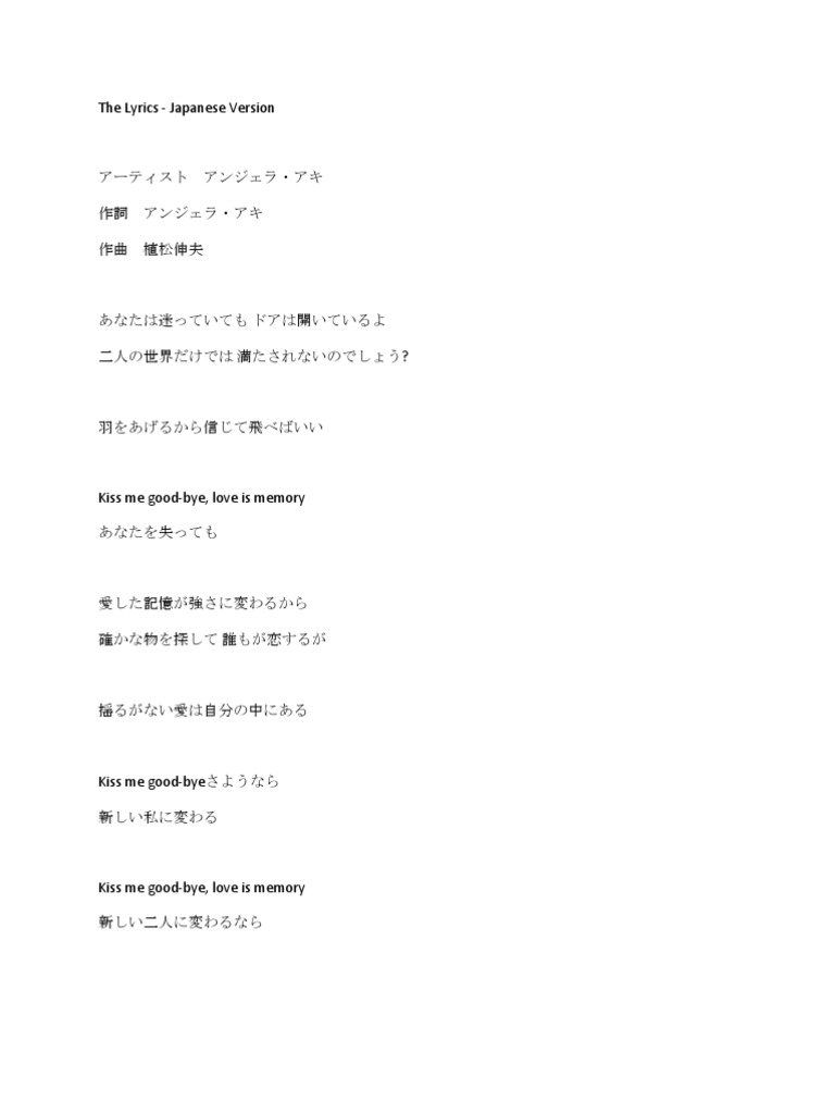 Angela Aki Kiss Me Good Bye Japanese Version Lyrics