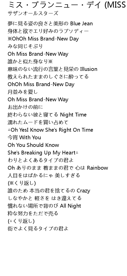 Paroles Lyrics Southern All Stars Miss Brand New Day