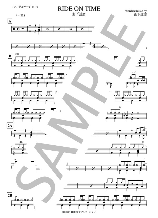 楽譜 Ride On Time 山下達郎 ドラム譜 シングルバージョン 2ページ 山下 達郎 ドラム その他 Piascore 楽譜ストア