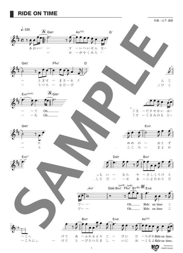 楽譜 山下達郎 Ride On Time コード 歌詞カード付きメロディ譜 山下 達郎 メロディ その他 Piascore 楽譜ストア