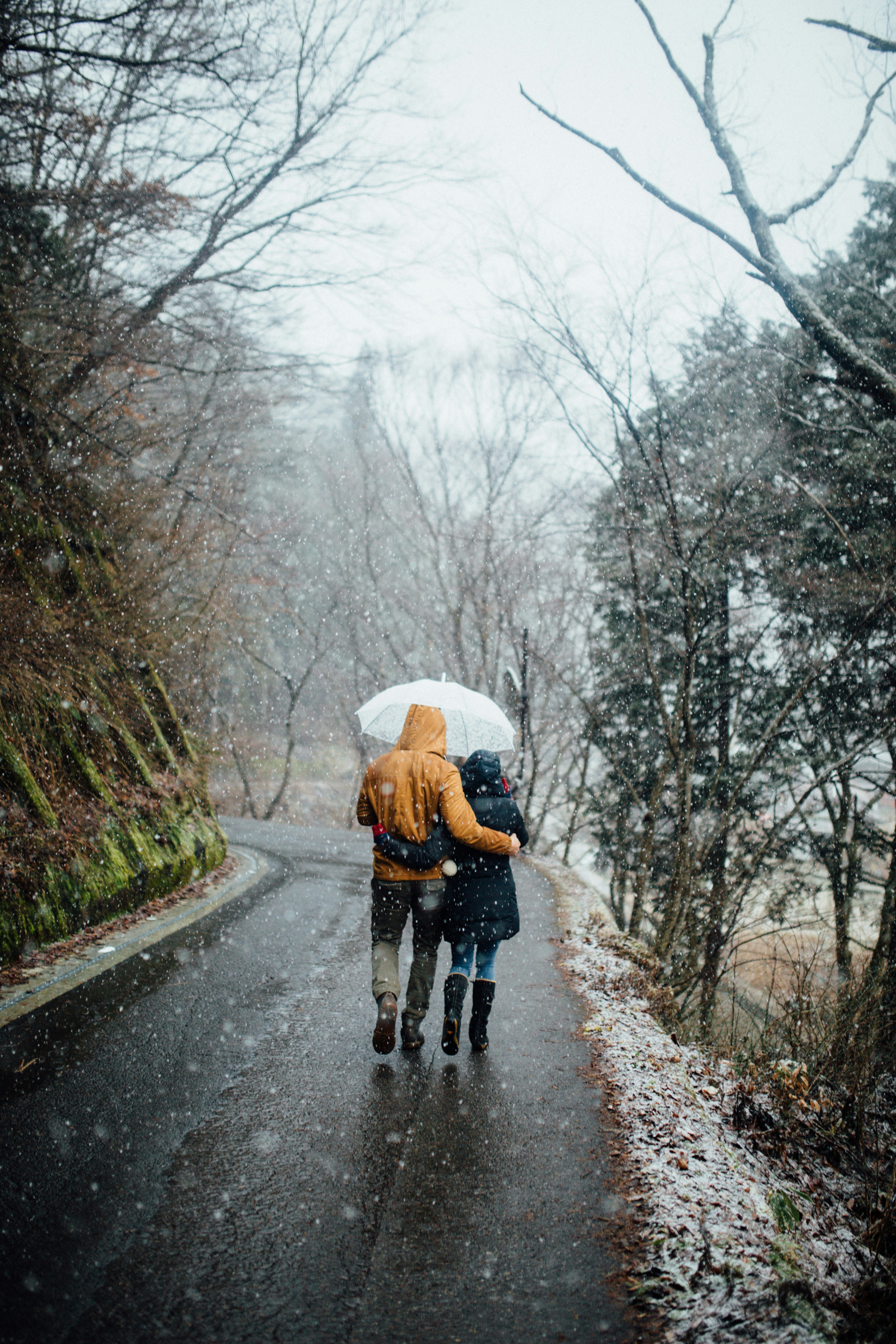 Man And Woman Walking In The Rain While Holding Umbrella Photo Free Apparel Image On Unsplash